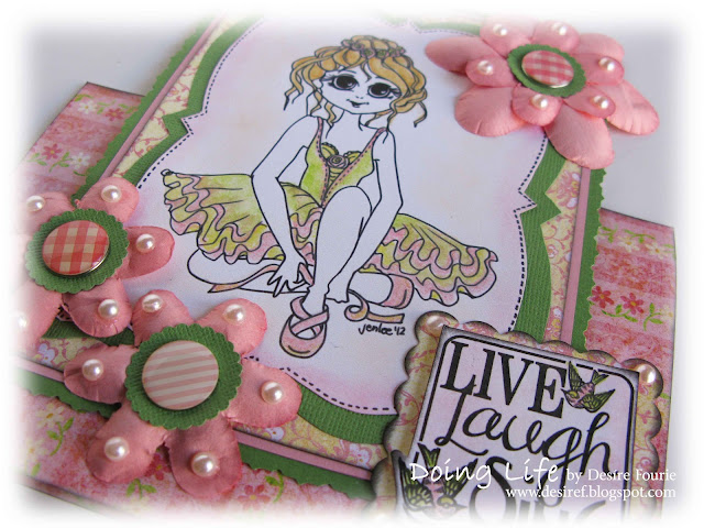 What a surprise when Sally-Ann from Fussy and Fancy Friday Challenges informed me that I have won a Guest Designer spot with them, with one of my entries in their challenges. Needless to say that I was honoured. I was asked to create a card to the theme of their Pearls and Flowers Challenge. I used Sitting Ballerina from DigiStamps4Joy and you can find her here.